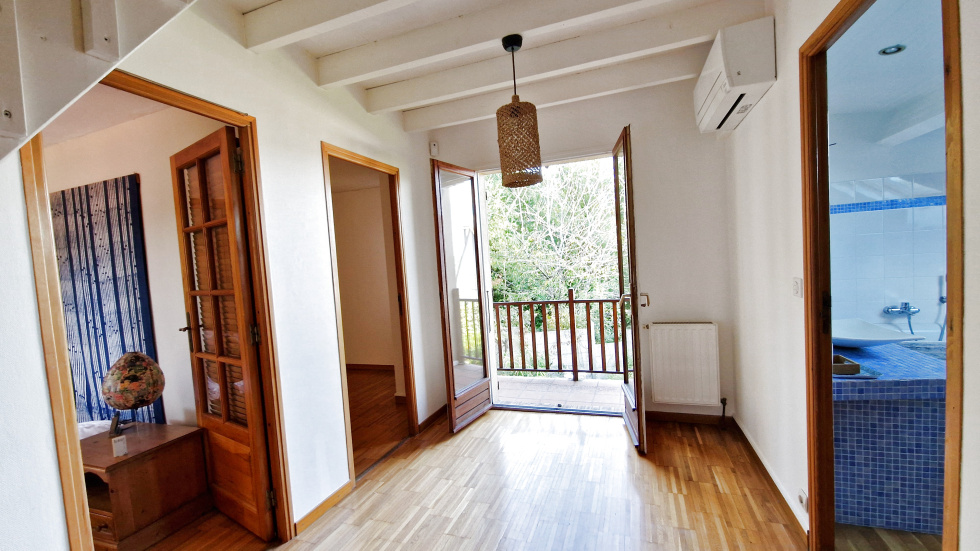 Du charme pour cette maison disposant au rez de chaussée d'une agréable pièce à vivre avec cuisine équipée de 52 m² ouvrant sur terrasses, une chambre (possibilité d'une deuxième chambre), une salle d'eau, un wc et une chaufferie-buanderie. Le premier niveau distribue deux chambres, une salle de bains, un wc, une salle de jeux pour enfants et un dégagement avec mezzanine pouvant faire office de bureau. Un garage pour une voiture complète l'ensemble. Le tout sur 400 m² de terrain.