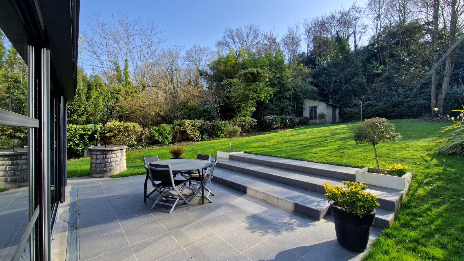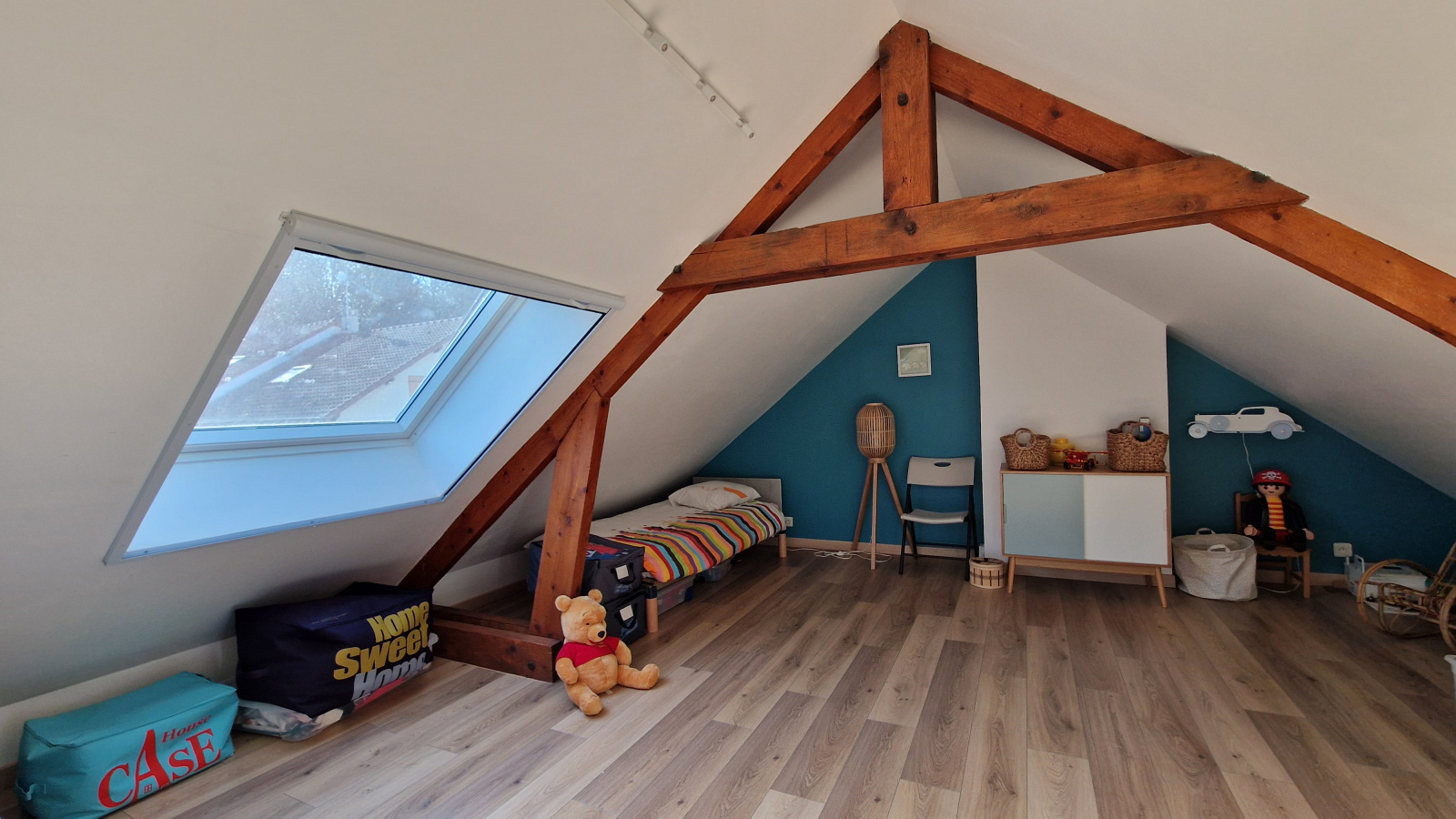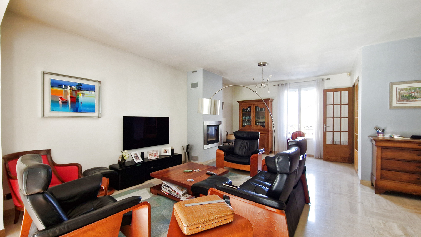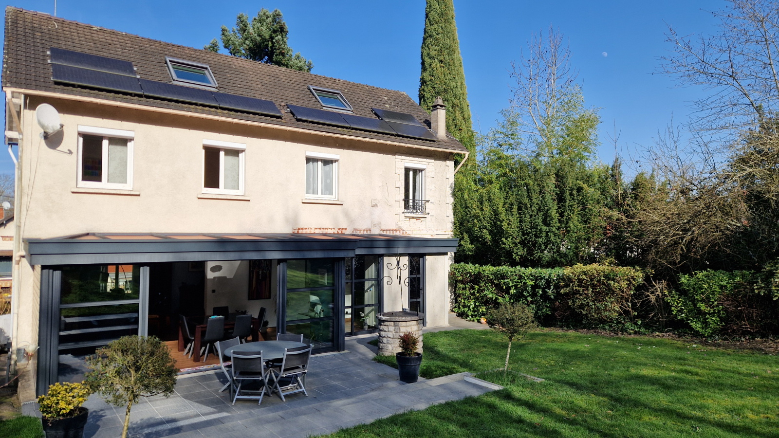 A proximité du centre ville et du RER, sur 1000 m² de terrain plein sud, agréable maison comprenant au rdc : entrée avec rangements, cuisine équipée, salle à manger disposant d'un accès jardin, salon avec cheminée, wc et chambre (14 m²) avec salle d'eau privative. Le 1er niveau dispose de trois chambres (21 m², 19 m² et 10 m²), salle d'eau et salle de bains, chacune avec wc. Le 2ème niveau bénéficie d'une chambre (11 m²), d'une pièce faisant office d'atelier et d'un débarras. le tout sur sous-sol avec garage deux voitures, cave, buanderie, chaufferie. Possibilité de stationner plusieurs véhicules sur la parcelle.