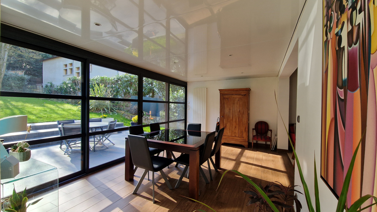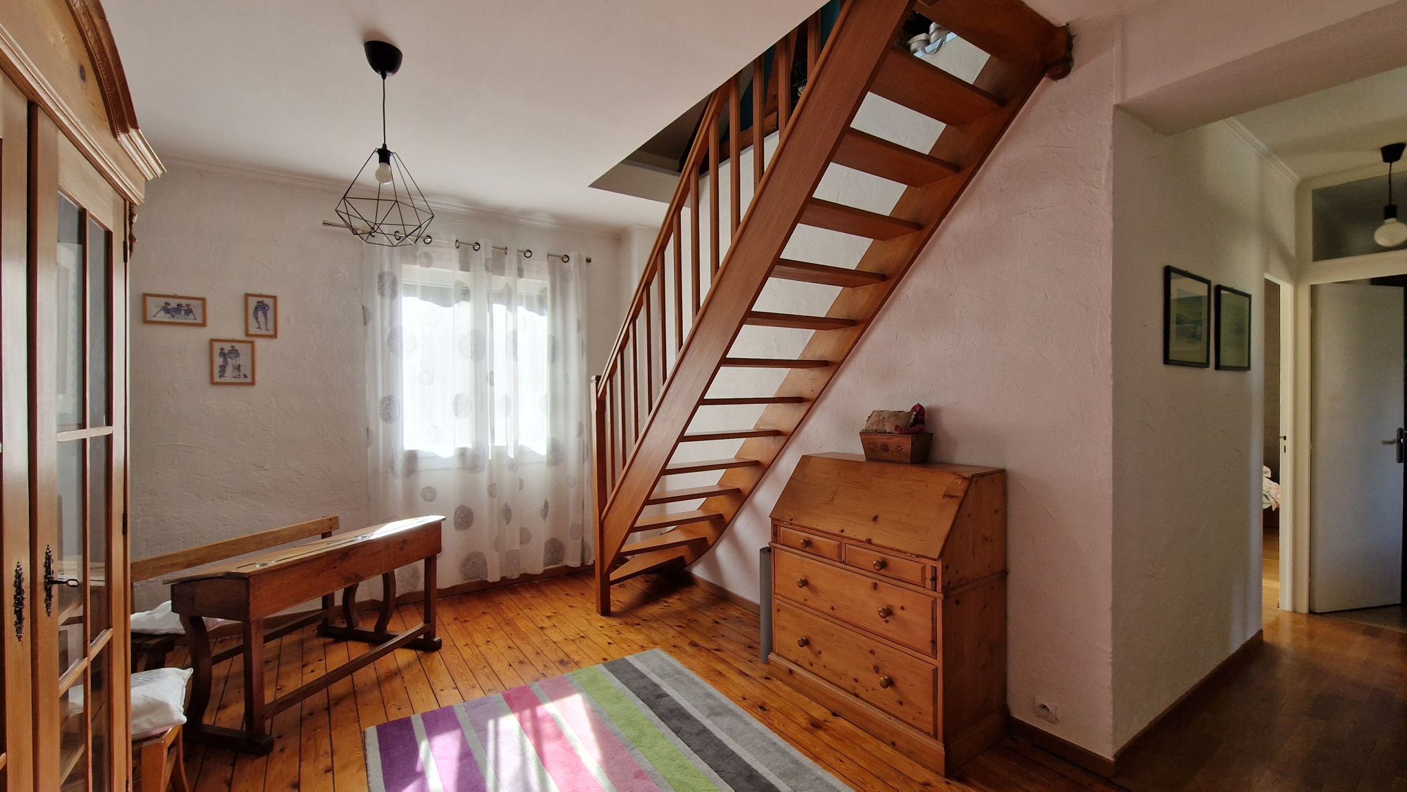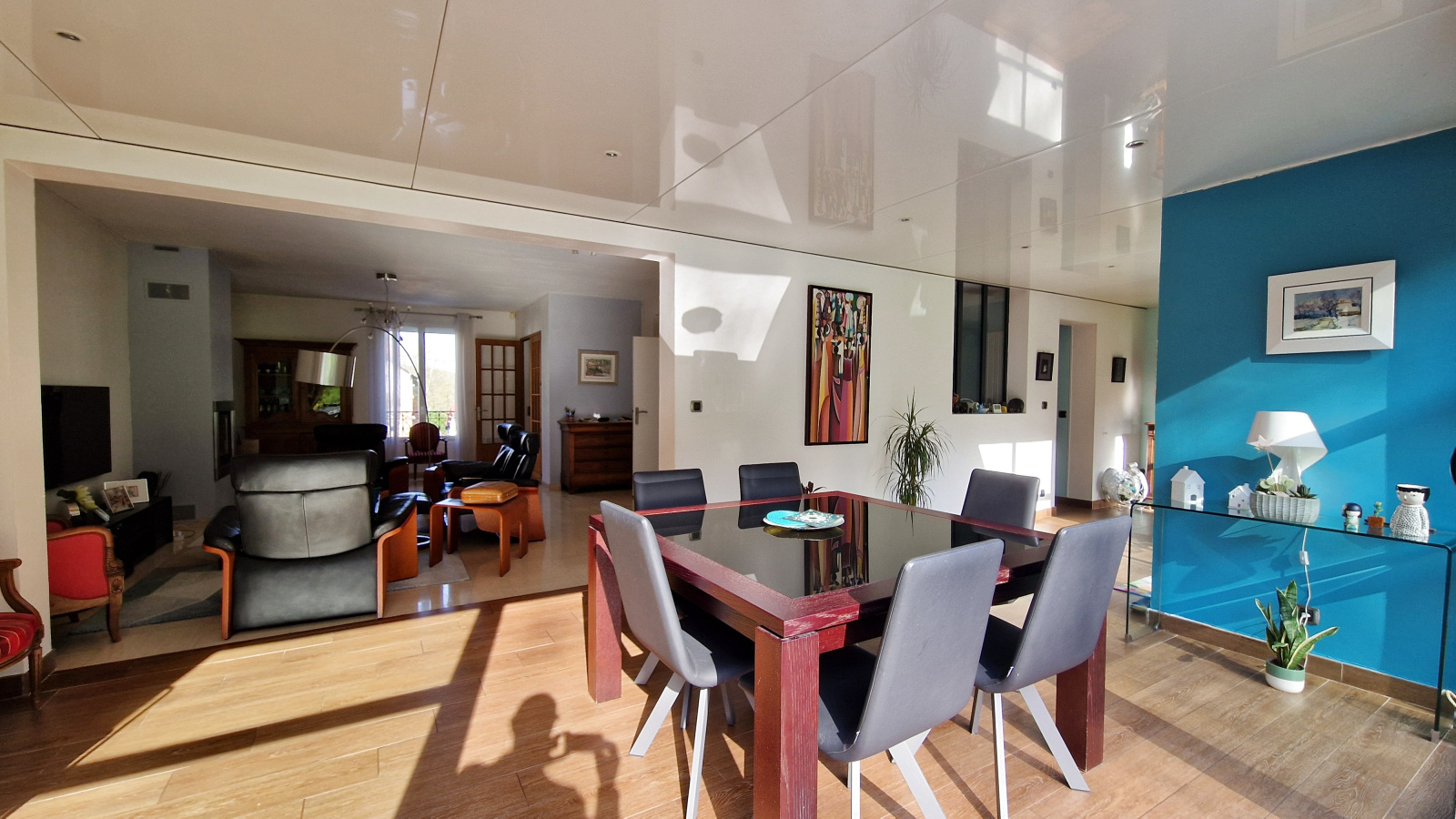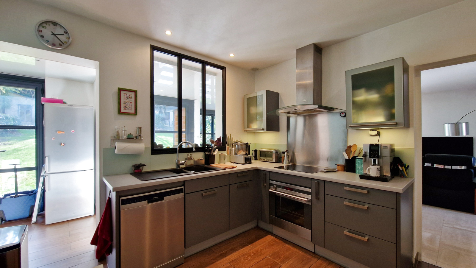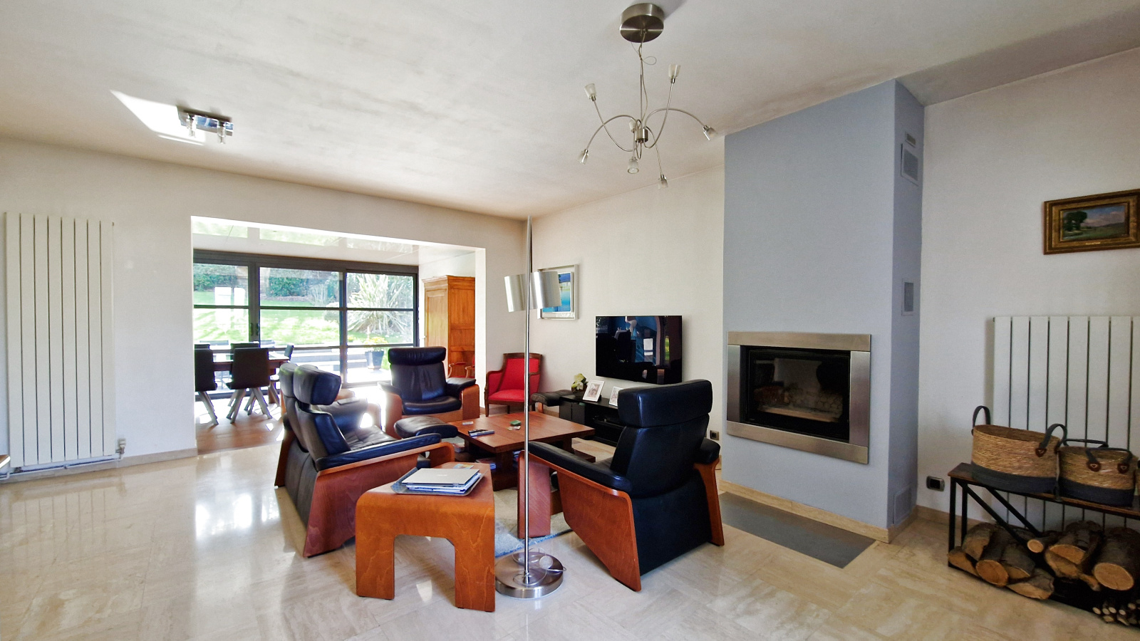 A proximité du centre ville et du RER, sur 1000 m² de terrain plein sud, agréable maison comprenant au rdc : entrée avec rangements, cuisine équipée, salle à manger disposant d'un accès jardin, salon avec cheminée, wc et chambre (14 m²) avec salle d'eau privative. Le 1er niveau dispose de trois chambres (21 m², 19 m² et 10 m²), salle d'eau et salle de bains, chacune avec wc. Le 2ème niveau bénéficie d'une chambre (11 m²), d'une pièce faisant office d'atelier et d'un débarras. le tout sur sous-sol avec garage deux voitures, cave, buanderie, chaufferie. Possibilité de stationner plusieurs véhicules sur la parcelle.